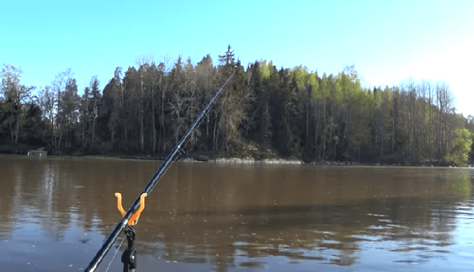 Делаем заброс, ждем когда приманка опустится на дно (леска быстро провиснет), ставим спиннинг на рогульку. Можно закрепить на спиннинге колокольчик. Поклевки подлещика выглядят как теребление кончика спиннинга с его некоторым его загибанием. Крупный лещ мощно загибает удилище, а иногда может и стащить его с подставок.