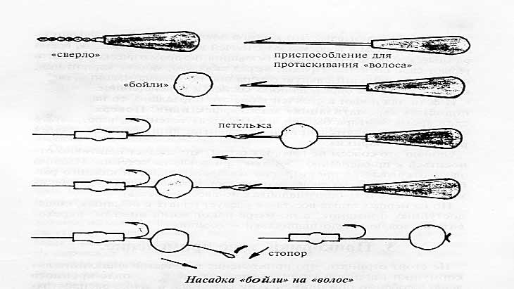 - Конец рабочей лески продевается через грузило, которое должно относиться к скользящему типу. Рекомендуемая форма – капля или оливка.