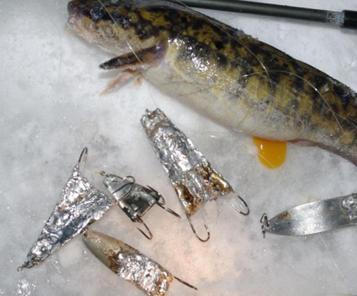В рыболовной литературе есть упоминания о таких зимних насадках для ловли налима, как мясо, сало и даже птичьи потроха. Не знаю, не пробовал. Для мяса и сала в хозяйстве всегда найдется более полезное применение, а потроха — слишком уж не эстетичная насадка.