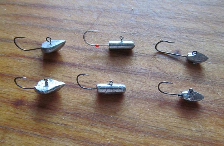 Джиговые головки представлены куском металла, из которого виднеется одинарный крючок. Зачастую это приспособление изготавливают из свинца. В точке, где входит крючок, должны присутствовать приспособления, которые препятствуют сползанию наживки.
