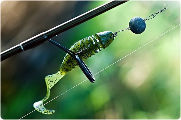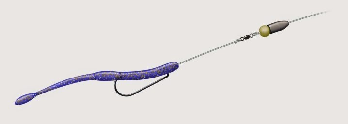 В техасской оснастке предпочтение отдается грузилу с пулевидным телом. Вкупе с ним используется офсетный крючок с червеобразными приманками.