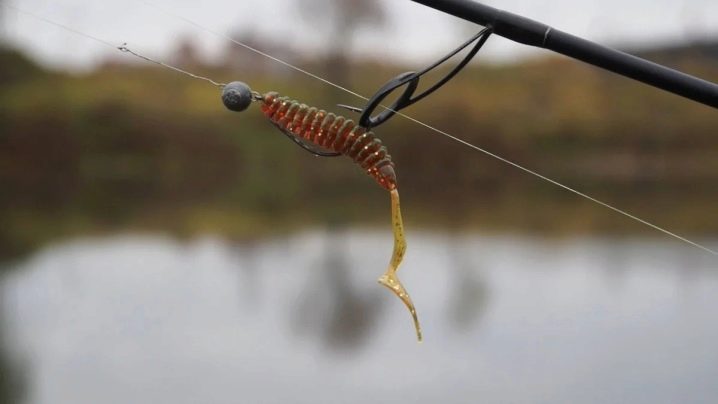 - С крючком в передней части. Оснастка имеет в составе офсетный крючок и надетую на изгиб пружинку. На последнюю накручивают переднюю долю наживки. Рыболов может проводить приманку равномерно либо рывками. Для ловли рыбы на глубине на крючковое цевье напаивают колбаску из свинца, либо пользуются готовыми крючками с огрузкой.