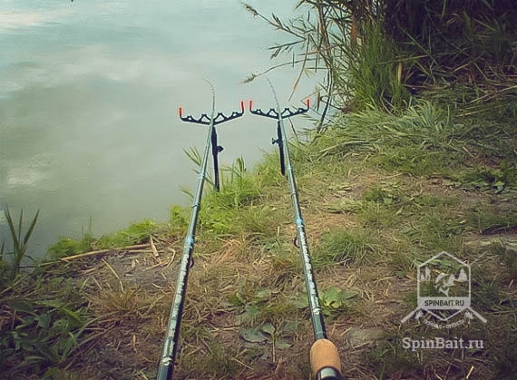 - Подставка для удилища. При фидерной ловле следует применять специальное устройство, за счет чего не нужно постоянно держать в руках.