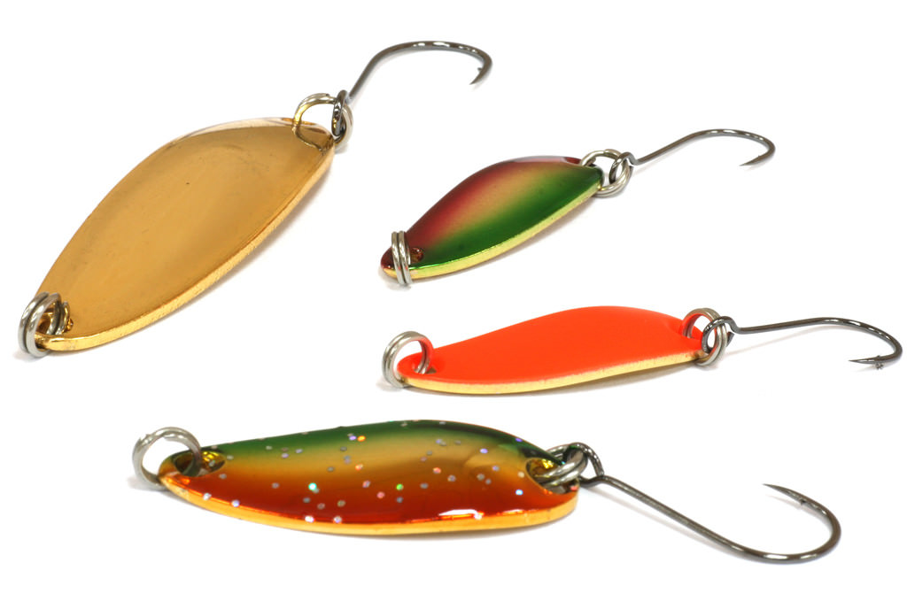 Так, например, утром до восхода солнца рыба лучше ловится на светлые блесны, после восхода — на золотистые, в середине дня — на темные, а к вечеру — опять на светлые. Конечно, это только примерная схема. Эксперименты с цветом блесен стоит начинать с базовых окрасок — серебристой и золотистой.