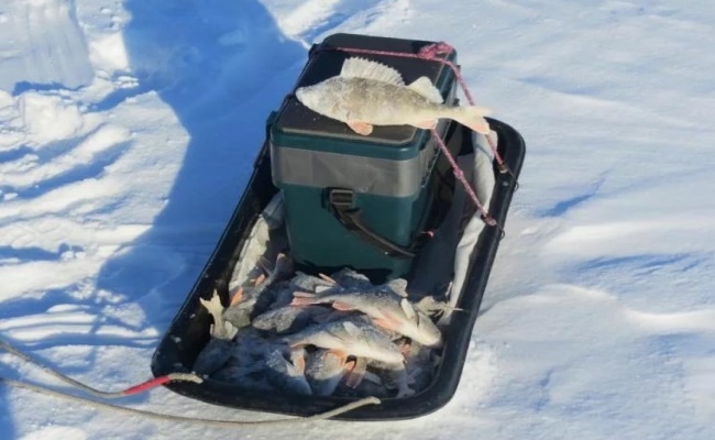 Неплохо иметь пластиковые сани-волокуши. Удобная штука. Туда и бур положить можно, и ящик рыболовный. Так же пойманную рыбку в руках таскать не придется.