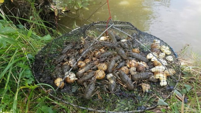 - Поднимают раколовку резко и аккуратно на поверхность, чтобы наползшие раки не убежали.
