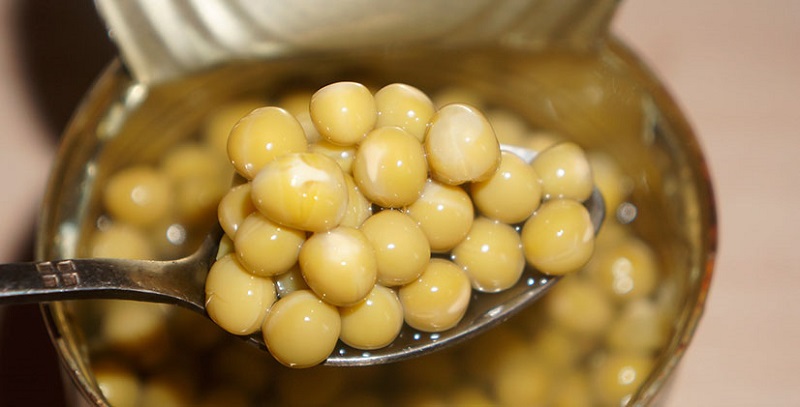 Альтернативой консервированному гороху будет сваренная гороховая каша, которую смачивают любым растительным ароматизатором. Например, маслом льна.