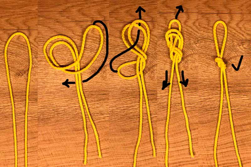 Пошаговая инструкция по вязанию крючка простым узлом: