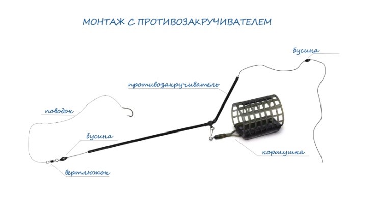 Как вариант, возможно элементарное применение кормушки с прикрепленным к ней поводком с крючком, но этот вариант окажется несколько хуже хорошо зарекомендованных себя фидерных оснасток.