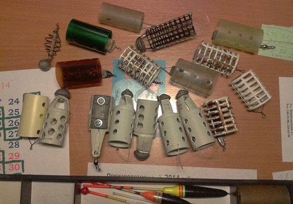 Одни рыболовы собирают оснастку на основной леске, завязывая узлы и ограничивая подвижность кормушки стопором. Другие рыбаки делают элементы своими руками, применяя различную толщину лески. И изготавливают при этом несколько разновидностей оснасток.