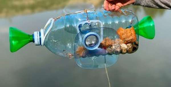 Простейший вид самодельной ловушки для рыбы можно изготовить из подручных материалов. Идеальным вариантом станет обычная пластиковая бутылка объёмом 5 литров. Чтобы сделать из неё импровизированную морду, необходимо: