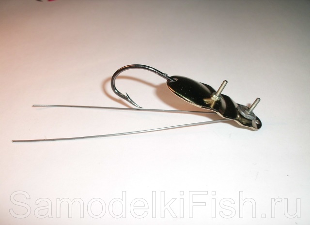 Заводскую блесну колебательной конструкции можно легко превратить в незацепляющуюся самостоятельно. Усики делают из пружинистой стальной проволоки или жесткой лески.