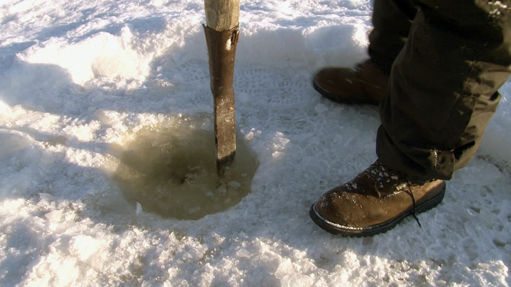 А если вам повезло поймать трофей, который не пролазит в лунку, приспособление будет просто незаменимым. Буквально пара ударов хорошо заточенной стали – и проем готов!