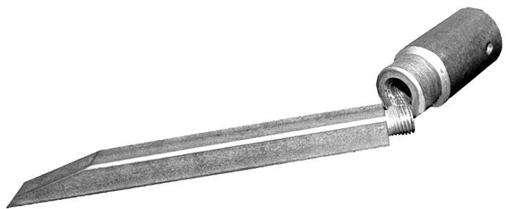 Из-за такого вида такой наконечник назвали по имени инструментов, на которые он очень похож: на стамеску или долото. Сделать его можно из крупных исходных материалов, например, рельсы или рессоры.