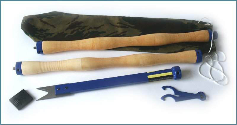 Также в качестве материала изготовления может использоваться и алюминий. Из него делают разбирающиеся рукояти, которые удобно транспортировать в разобранном виде.
