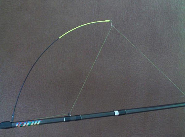 При поклевке леска натягивается и изгибает дугу. Ориентируясь по колебаниям яркого кончика дуги – легко определить момент поклевки.