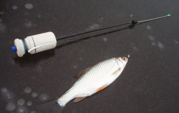 Хорошую идею можно позаимствовать у зимних форелятников – разместить на хлыстике ученическую линейку 20 см. Тогда крупный карась или лещ не сможет утащить удочку в лунку у зазевавшегося рыболова.