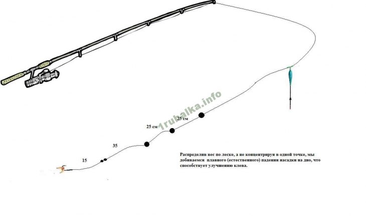 Для этого поплавок и груз настраиваются так, чтобы вся оснастка обладала немного отрицательной плавучестью. Только так поплавок при всплытии будет компенсировать вес приманки.
