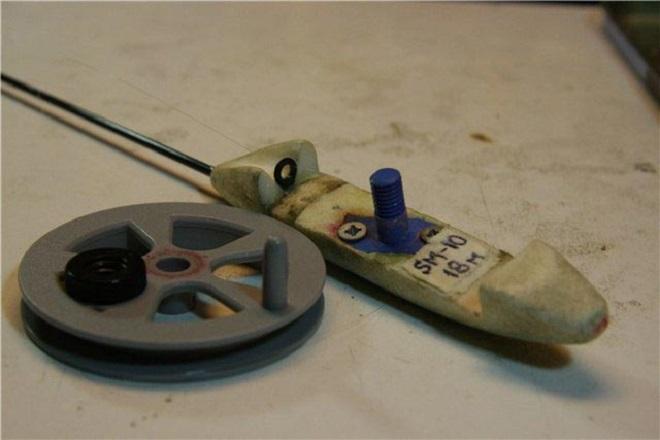 - Катушка. Кронштейн, а также саму катушку можно взять ранее используемые. Но также есть вариант вырезать катушечное колесо из пенопласта, твердого и хорошо спресованного. Чтобы колесико легко функционировало, необходимо делать резиновую прокладку на ось катушки.