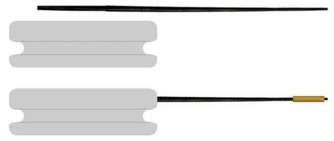 - Следующий этап заключается в одевании на хлыстик двух кембриков. Одеваться они должны плотно. Материалом может послужить ниппель или изоляция от провода. С помощью этих кембриков, кивок крепится к хлыстику. В результате получается регулируемая конструкция, способная изменять гибкость кивка. Это нужно для того, чтобы приспособиться к определенным условиям рыбалки.