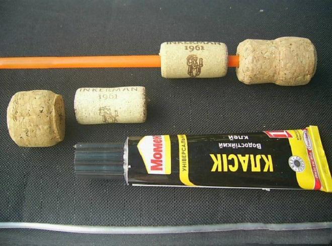 Самую простую удочку вполне можно изготовить из корковой пробки, несмотря на то, что её форма будет не такой удобной для ладони как пенопластовый вариант.