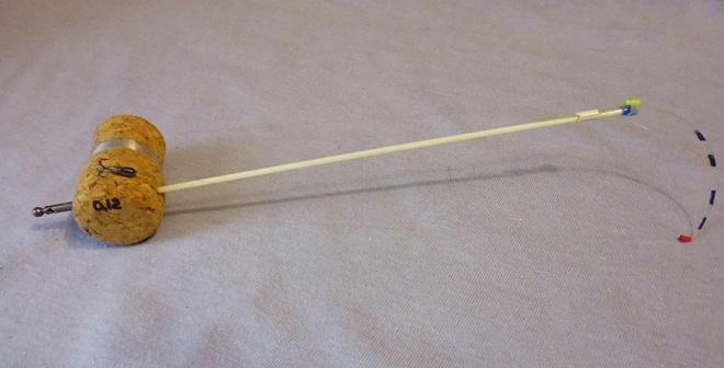 Последнюю пробку, к которой в дальнейшем будет крепиться хлыстик, надевают на проволоку только на половину, оставляя место для продолжения удилища.