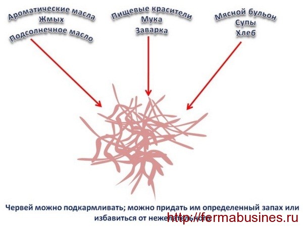 Просто создать условия, где хорошо хранятся черви, это мало. Необходимо позаботиться об их питании, иначе они погибнут.