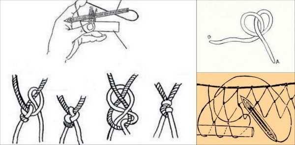 Она не гниет, очень быстро сохнет и более долговечна. Узлы, которые применяются при вязании сетей, могут быть различными.