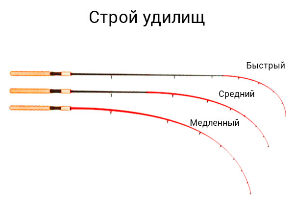 Эта характеристика показывает, как изгибается удилище под действием нагрузки. Бывают быстрого и медленного строя.