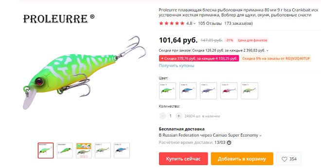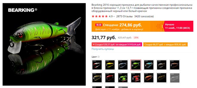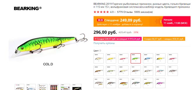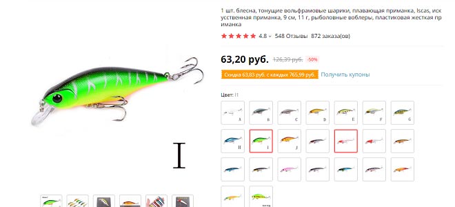 Узнать о конкретных рабочих приманках и ссылках на магазин можно на сайтах, в видеороликах или непосредственно от знакомых рыболовов. Однако, ассортимент китайцев постоянно пополняется, и найти нормальные приманки можно и самостоятельно, если правильно подходить к осмотру магазинов непосредственно на Али.