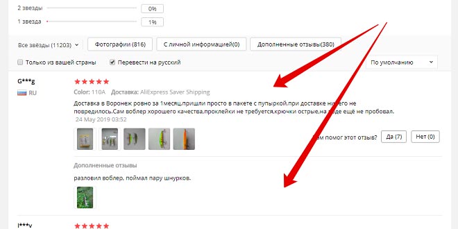 Прокручиваем вниз до отзывов. Тут нас интересуют не собственно отзывы – там найдешь только, как быстро пришла посылка, хорошо ли упакована. Это не интересно – сейчас с Алиэкспресс все приходит и обычно нормально упаковано.