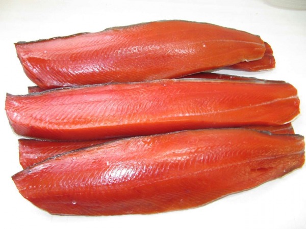 Уникальная рыба пользуется любовью еще и за счет своего нежного мяса, которое по вкусовым характеристикам считается самым лучшим из красных. Кроме того, оно богато витаминами (А, Е, В3, РР, С) и минералами (кальций, никель, фосфор, железо, магний, фтор, йод). Очень много в мясе и насыщенных жирных кислот, в частности – Омега-3.