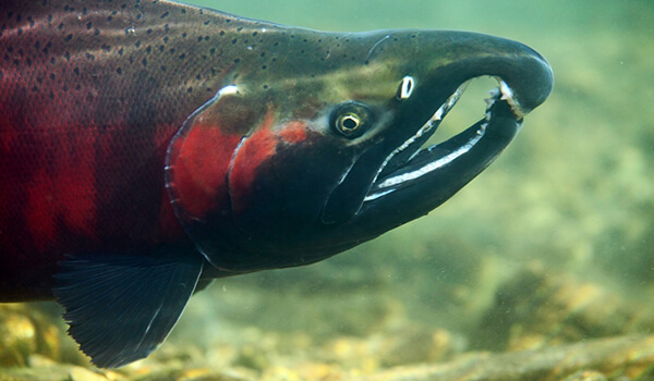 При заходе в реку для нереста, тело самца кижуча претерпевает существенные изменения: