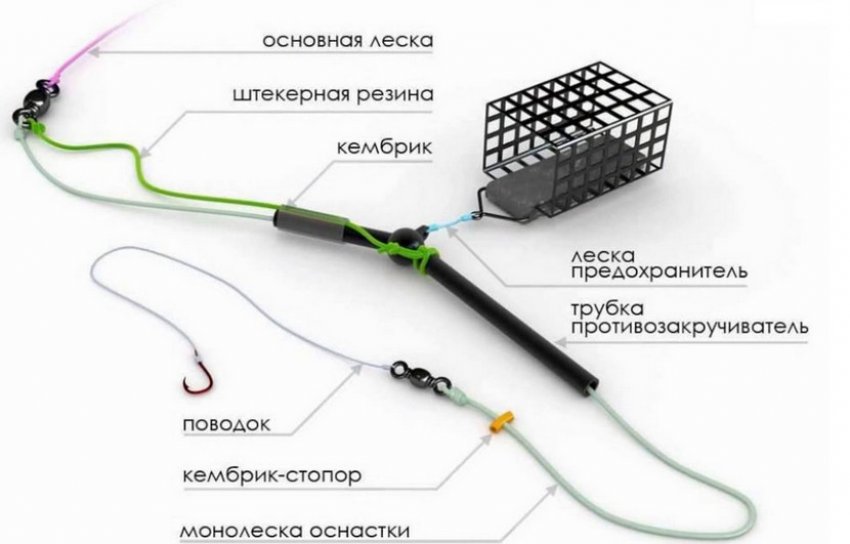 Также при ловле можно использовать «резинку». Она состоит из грузила, резиновой части и прикреплённой лески с поводками.