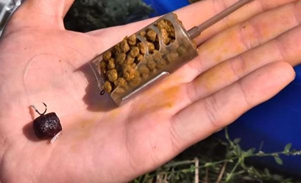 Может подойти мешочек из мелкоячеистой веревочной сетки, с грузилом. Тогда применяют довольно тугую, плотную прикормку.