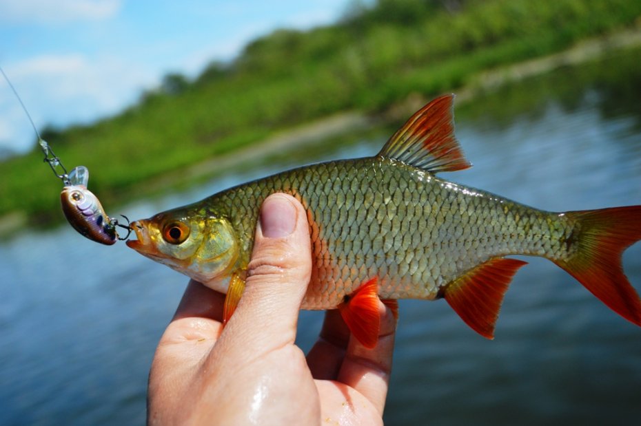 Крючок следует подобрать крепкий, но тонкий, иначе возможно порвать слабую губу красноперки, и она сорвется. В качестве грузила достаточно использовать одну дробинку малого диаметра.