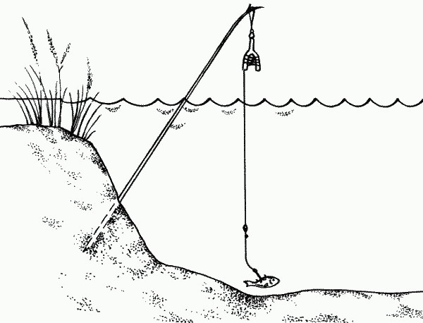 Это самая простая конструкция, принцип действия которой остается неизменной на протяжении многих веков. Подобную снасть с успехом применяют и в наше время, поскольку ее можно сделать непосредственно возле водоема, с минимальной тратой времени и составляющих.