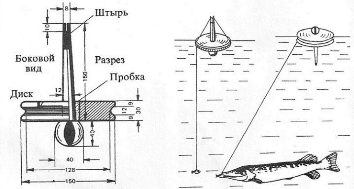 Это может быть деревянная деталь, пластиковая бутылка или пластмассовый круг, который может удерживаться на воде. Существуют конструкции жерлиц, которые устанавливаются на воде, но за ними нужно регулярно следить, иначе щука может затянуть ее в коряги.
