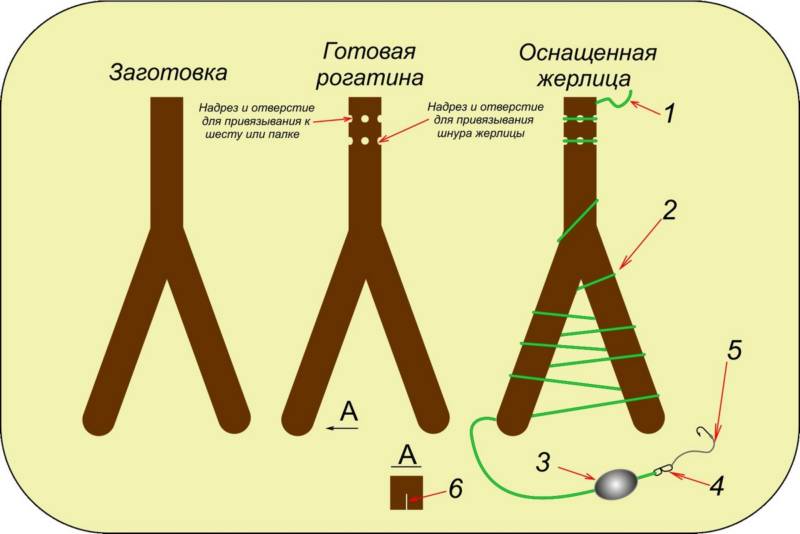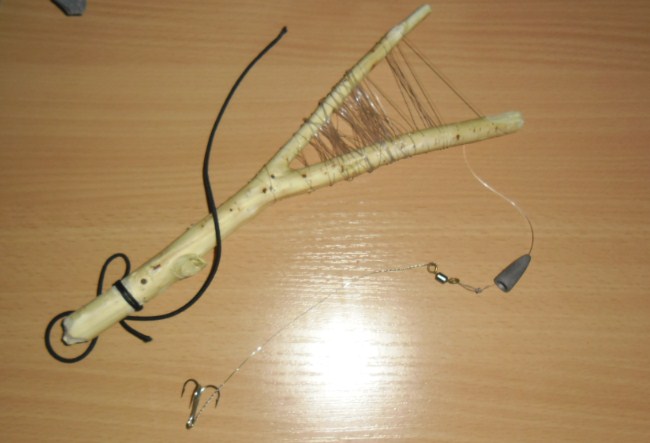 Рогатку следует аккуратно обработать ножом. Удалить заусеницы. Леска должна сходить с нее беспрепятственно в случае поклевки.