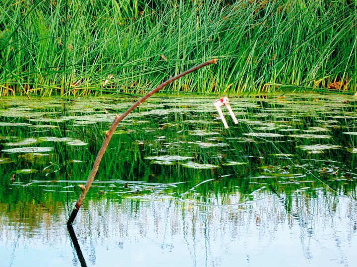 Если в наличии имеется лодка, то установить жерлицу в нужном месте не составит труда. Устанавливать летние жерлицы с берега, без лодки, крайне сложно, тем более, если имеются береговые заросли. Хотя и это не проблема, если снять с себя одежду, тем более, что на улице лето, а не холодная зима.