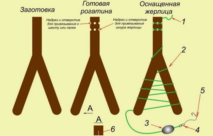 - такую снасть следует оснащать леской толщиной до 0,6 мм. Желательно проследить за тем, чтобы она по цвету не отличалась от цвета воды. Леску нужно восьмеркой намотать на тело рогульки. Не усердствуйте при этом. При сильном наматывании леска деформируется;