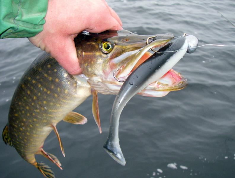 Осенью востребованы силиконовые приманки. Они отличаются схожестью с живой рыбой, на которую охотится щука.