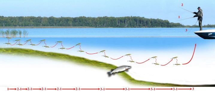 — Джиговая ступенчатая проводка (твистер или виброхвост на джиг-головке, отводной поводок, дроп-шот). В хороший клев используйте более резкую подмотку, а в плохой — медленную.