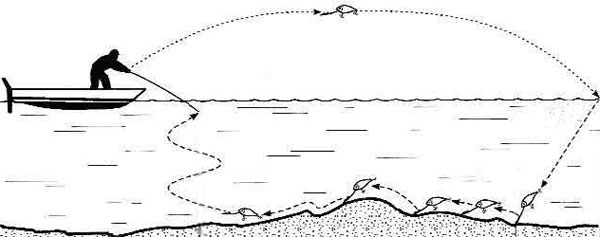 После такого спуска вновь повторяют взмах; за счёт дрейфа, который будет происходить даже в самом спокойном водоёме, успешно облавливают таким способом большие акватории.