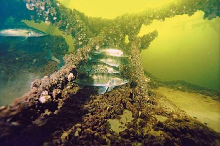 - Мелководные участки (особенно в летнее время), куда судак нередко заплывает, преследуя добычу.