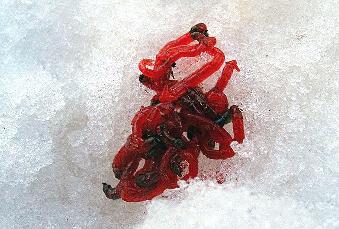 Зимой и весной мотыль пользуется особенным спросом, поскольку в это время года червей найти очень трудно. В хранении он не прихотлив, его можно легко насаживать на крючок и также легко вытаскивать на свет из емкости для хранения. Если рыбалка откладывается на несколько недель, то мотыль можно заморозить.