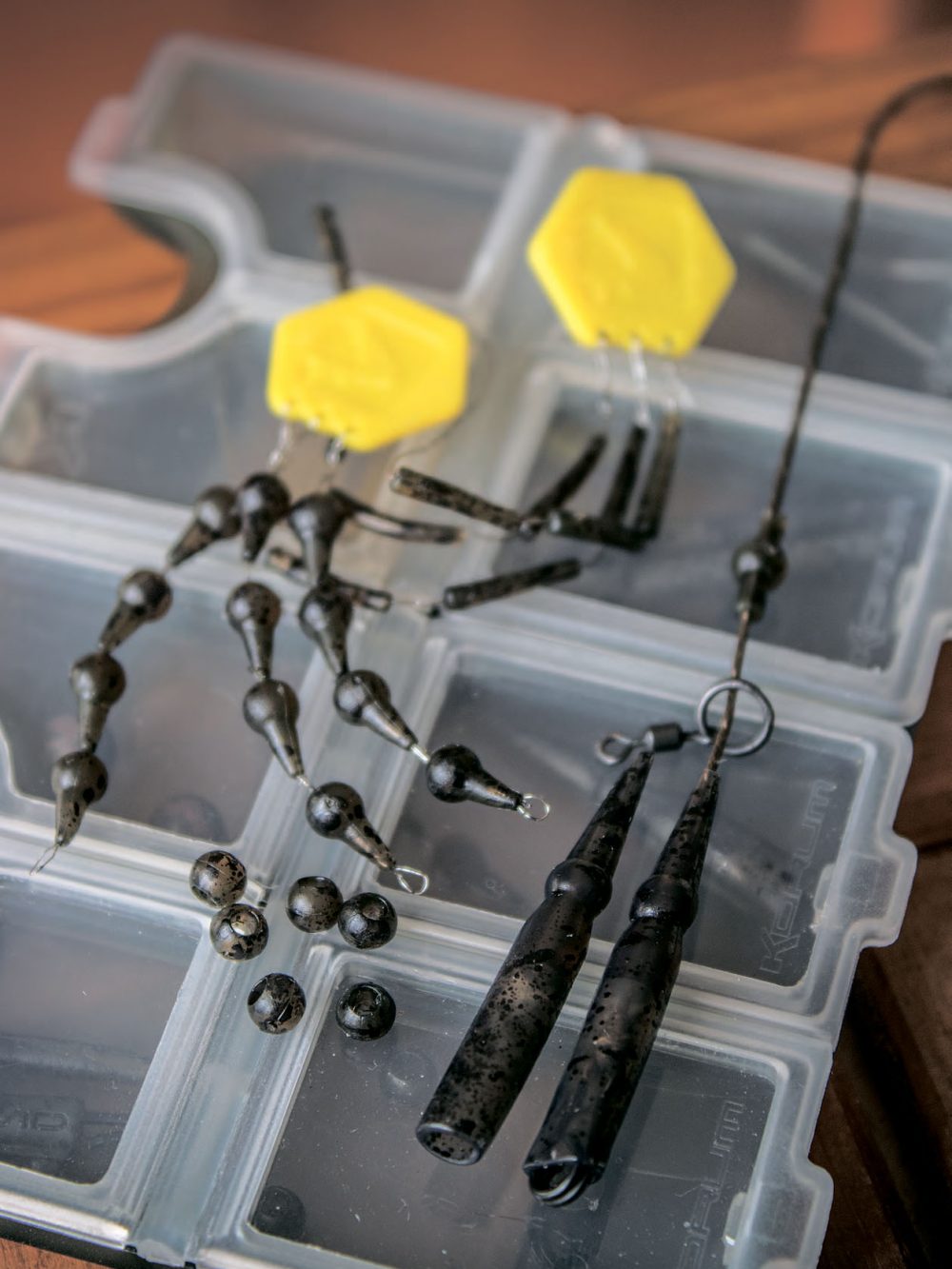 При охоте за крупным карпом или ловле на экстремальной дистанции я полагаюсь на очень жесткие материалы, гарантирующие отсутствие запутывания монтажа. Например, оснастки, связанные на основе флюрокарбона, толстой моно или плетенного материала в плотной оболочке.