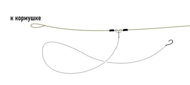 - Фидерная оснастка вертолет и два узла с длинными поводками для ловли на течении на медленно тонущую приманку.