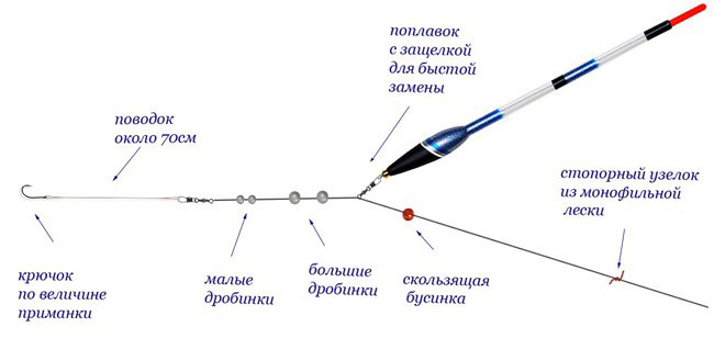 - поплавок, любой формы, но выдерживающий тяжёлое грузило, лучше всего применять поплавок с изменяемой нагрузкой.