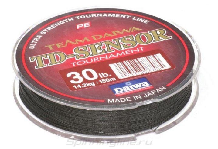 - TD-Sensor Tournament. Высококачественная плетеная леска японского производства. Сохраняет свои первоначальные технические характеристики на протяжении всего сезона, у аккуратных рыбаков служит гораздо дольше. Отлично держит форму, обладает устойчивым цветом и трудно смывающимся покрытием. Единственный минус – высокая стоимость.